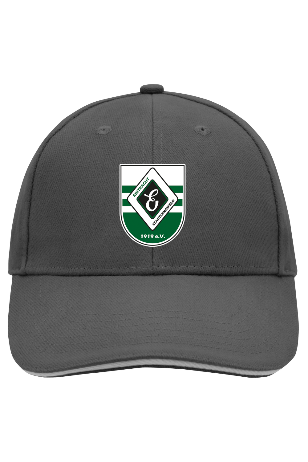 Dieses Cap ist aus strapazierfähigen Baumwollgewebe gefertigt, welches in Form der 6-Panel-Form geschnitten ist. Der Schirm ist mit einer kontrastfarbigen Biese ausgestattet. Verschlossen wird die Kappe über eine Textillasche mit Messing-Schließe, über welche die Kopfweite stufenlos eingestellt werden kann. Für erhöhten Tragekomfort sind die einzelnen Panele mit ventilierenden Öffnungen ausgestattet.